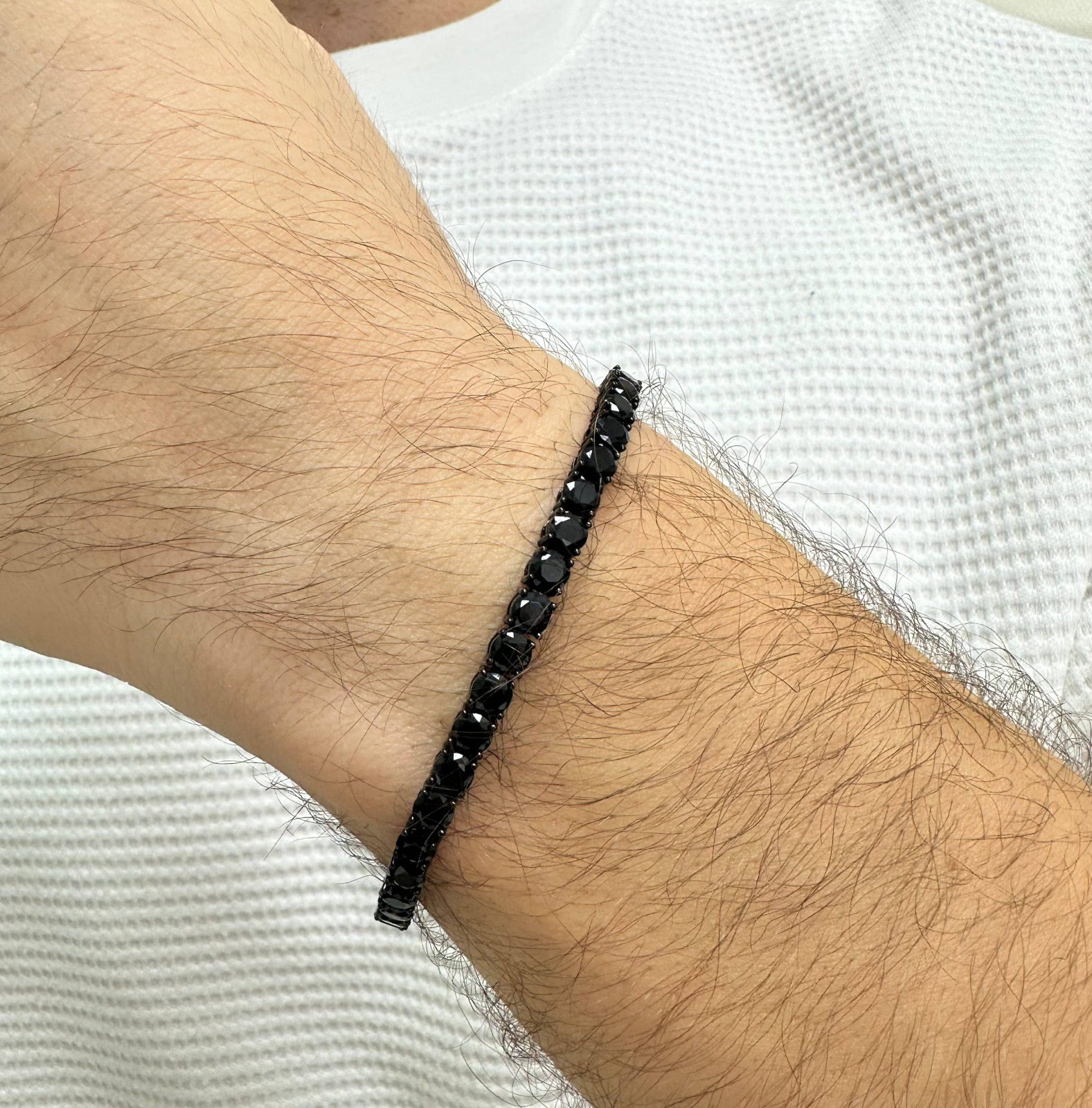 Bratara Tennis Argint, 4mm, pentru barbati, Full Black, Una Vida