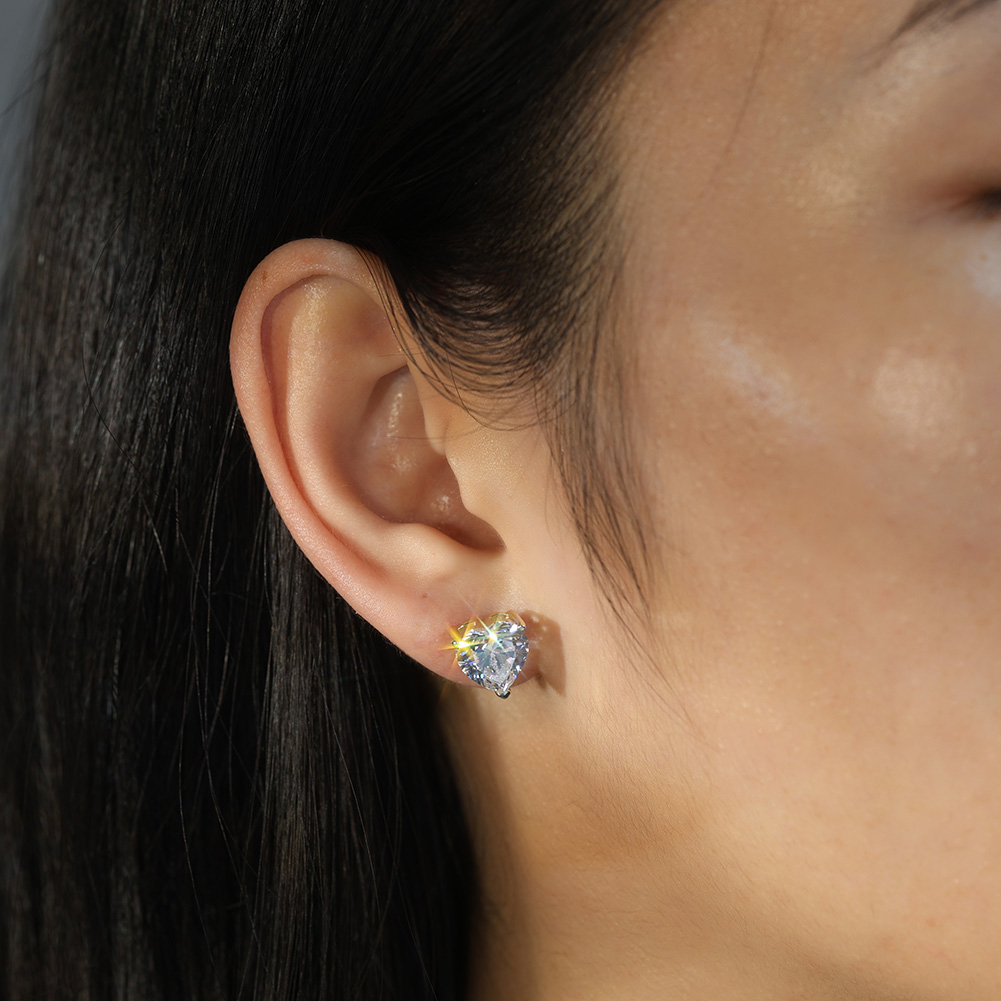 Cercei Inima Stud cu Zirconiu, Argint 925