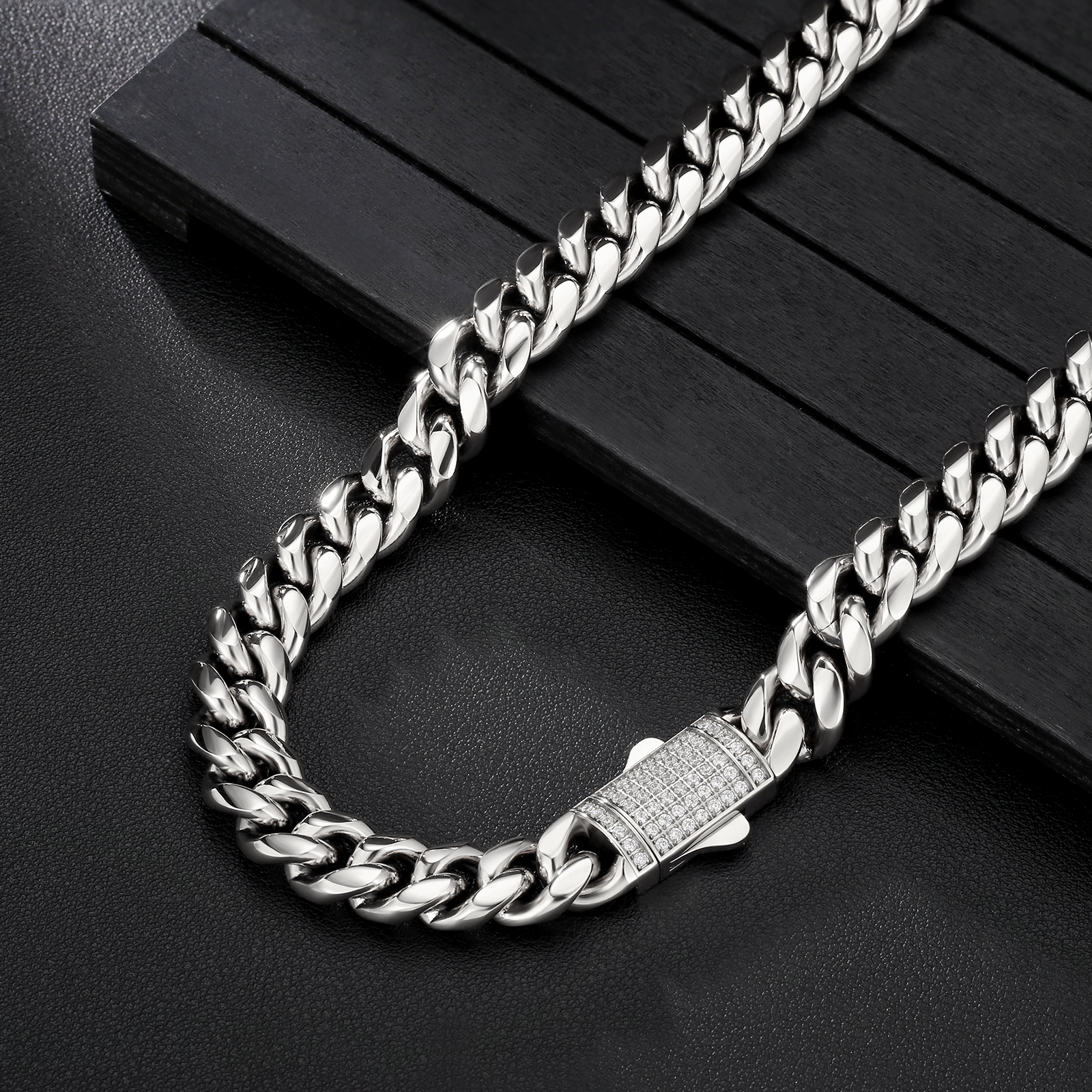 Lant Cuban Elements din Oțel Inoxidabil pentru bărbați – 12 mm, cu zirconiu